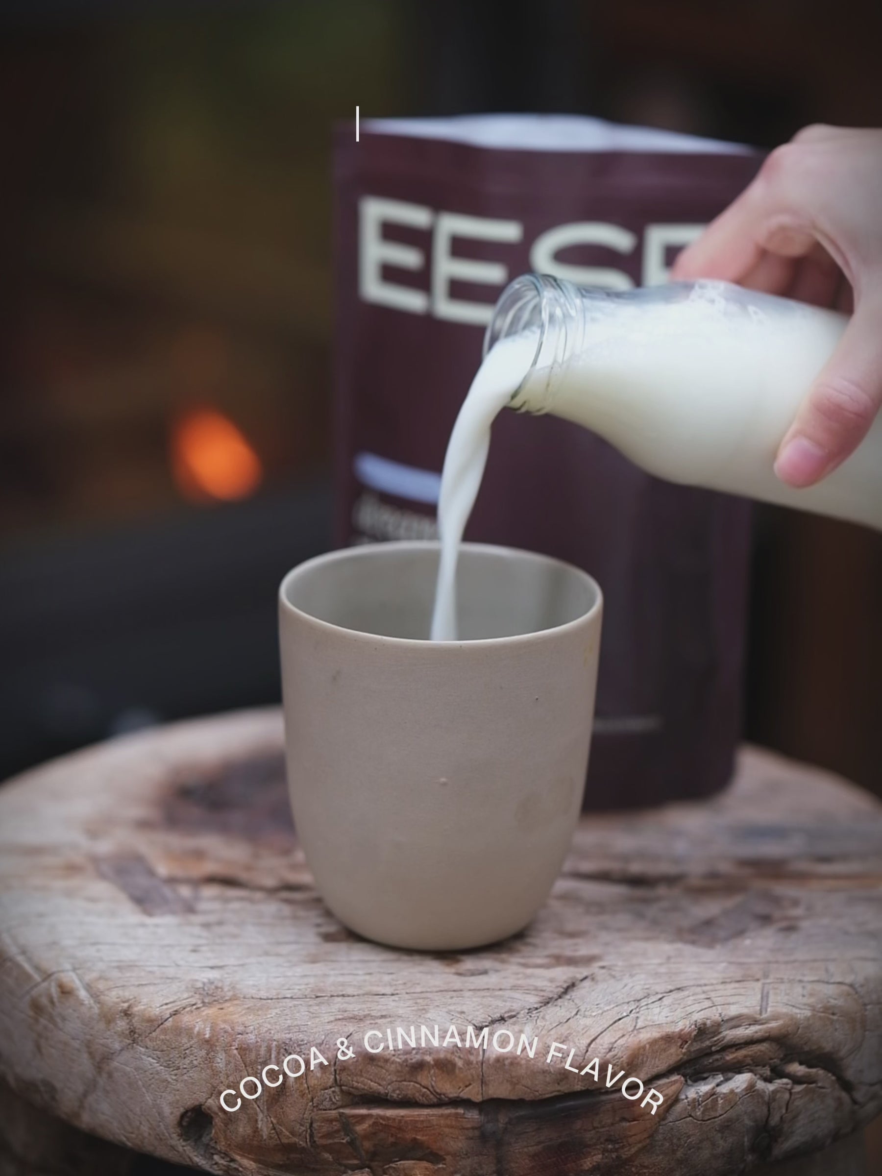Eese has a rich, chocolatey taste with warm notes of cinnamon and coconut milk. It’s a comforting functional cocoa drink that feels like a bedtime treat.