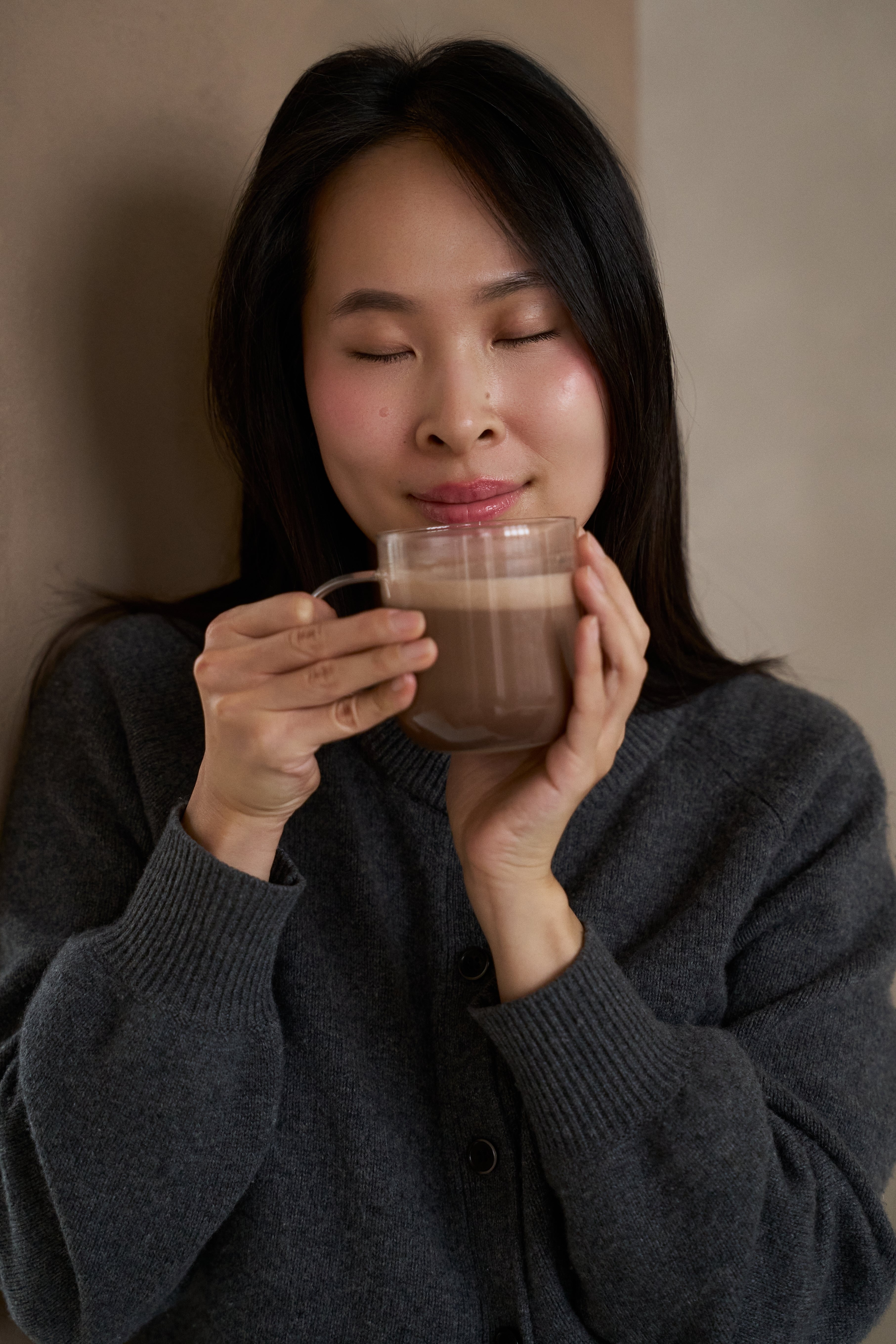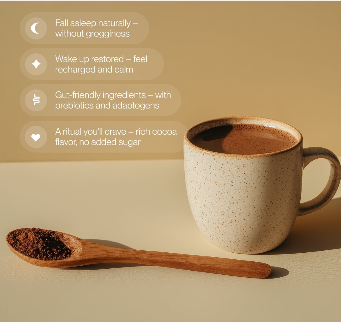 Creamy, rich cocoa with a hint of cinnamon. Smooth texture that melts into warm milk. A comforting ritual, not a chalky supplement.